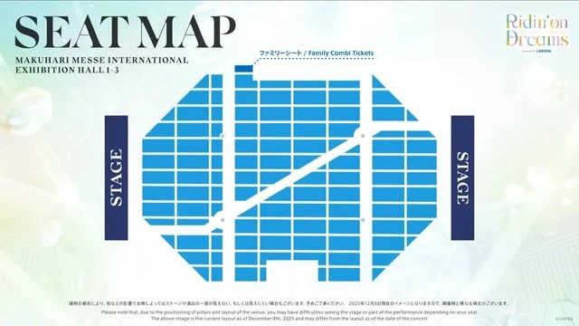 今回の 7th fes. が行われる 幕張メッセ 国際展示場1〜3ホールのキャパは、おおよそ 10,000〜15,000席ほど と考えられています。(席の配置方法によって変わってきます)