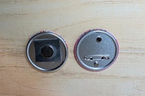 特に57mmサイズの缶バッジだと、小さいマグネット1個だけでは回転しやすかった。