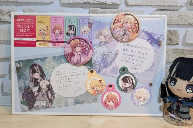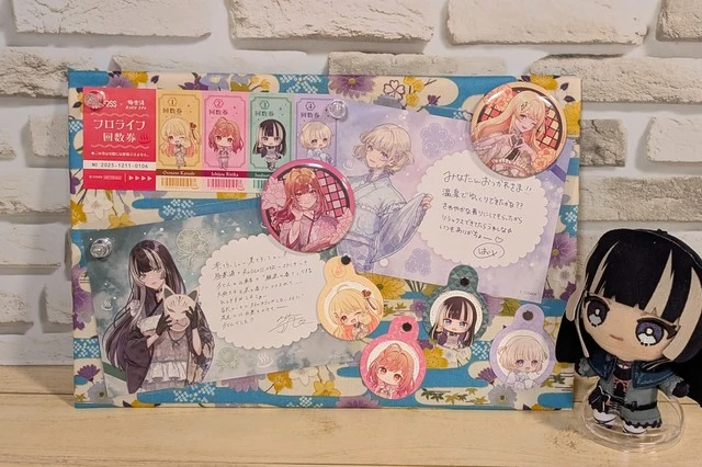 チェーン付きのキーホルダーなども一緒に飾れるので、いろいろなグッズを飾る 推しのコーナー作るのに良いですね!