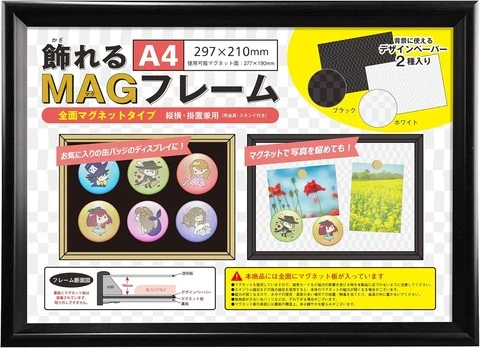 また、amazonなどでは「 缶バッジ展示用マグネット額縁 」も販売されている。
