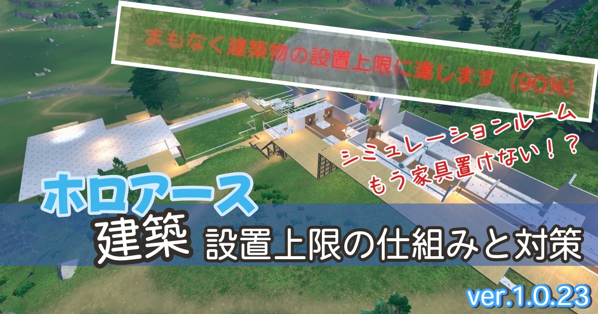 ホロアースのシミュレーションルームで遊んでいると、こんな警告を見たことがある人もいるのでは? たくさん建築していると警告が! まもなく建築物の設置上限に達します そう、このゲームには 設置できる数の上 ...